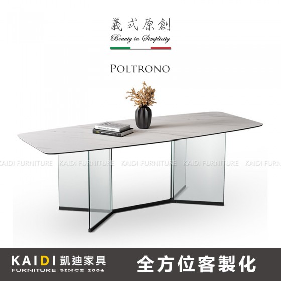 K34-01-001 伯爵諾懸浮感透明強化玻璃桌腳6尺岩板餐桌