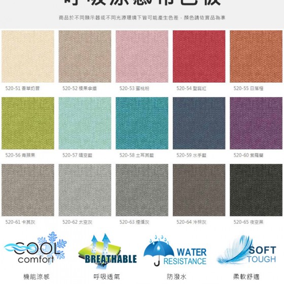 ● 此款使用的示意布版為涼感布。若訂做其他皮面或是貓抓皮,則看其訂做的材質特性而論