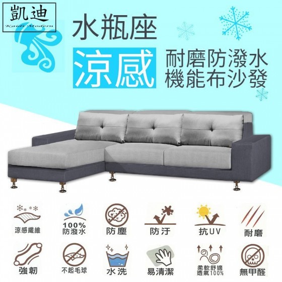 ● 商品名稱:K60-0013-7612 水瓶座獨立筒正L型多功能涼感布沙發