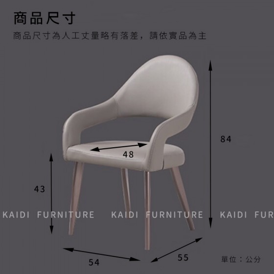 【商品介紹】 ● 商品名稱:K34-05-36海德扶手皮餐椅/可改色 ● 優惠價格:4800元/單張 ● 自取商品在訂購前請先詢問目前是否仍有現貨,以免白跑一趟,避免不必要的爭議 【尺寸規格】 ● 尺寸約:寬54深55高84公分/坐深48坐高43.5公分 [商品為人工丈量略有誤差,請依實品為準] 【商品說明】 ● 材質:皮面/碳素鋼腳 【其他備註】