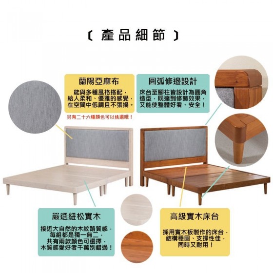 ● 商品名稱:K70-512-32 艾米堤北歐風實木5尺床頭床底