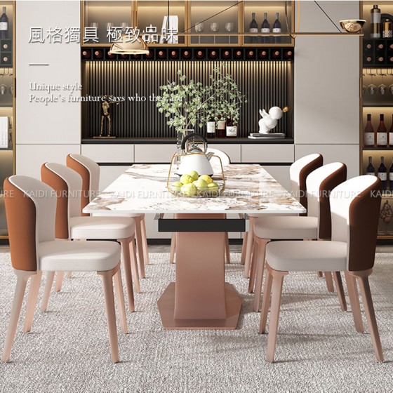 K34-06-10 維茲義式輕奢簡約雙C腳岩板伸縮餐桌