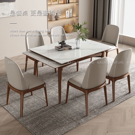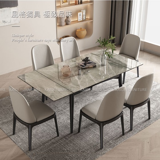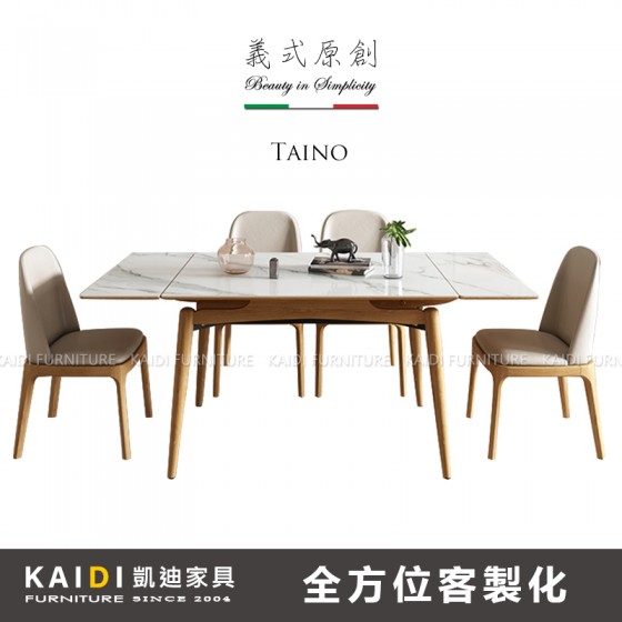 K09-09-13 泰諾北歐風原木腳座伸縮岩板餐桌/兩側開