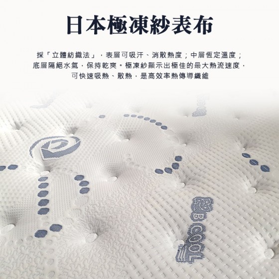 ● 商品名稱:K65-03-2 經典皇爵三線乳膠極凍紗獨立筒床墊/另售3.5尺及6尺