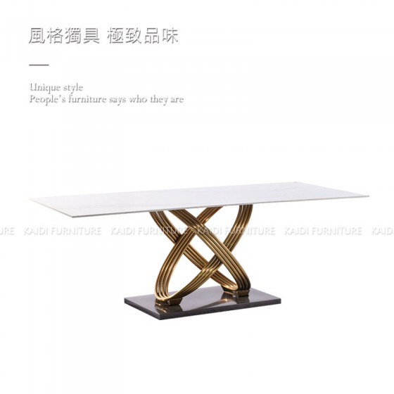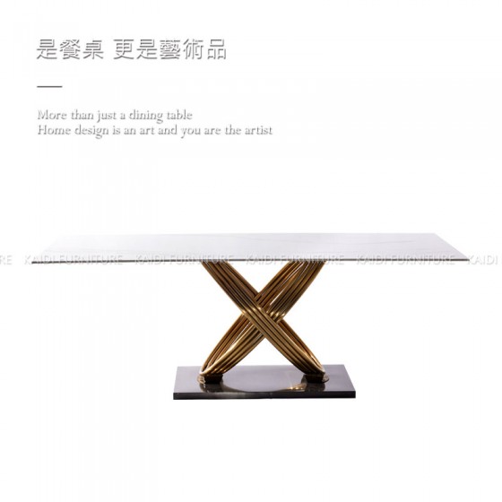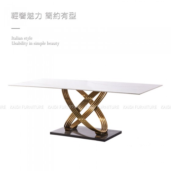 K34-ND6101 潘尼義式輕奢6尺不鏽鋼金色腳岩板餐桌