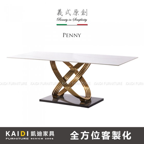 ● 商品名稱:K34-ND6101 潘尼義式輕奢6尺不鏽鋼金色腳岩板餐桌