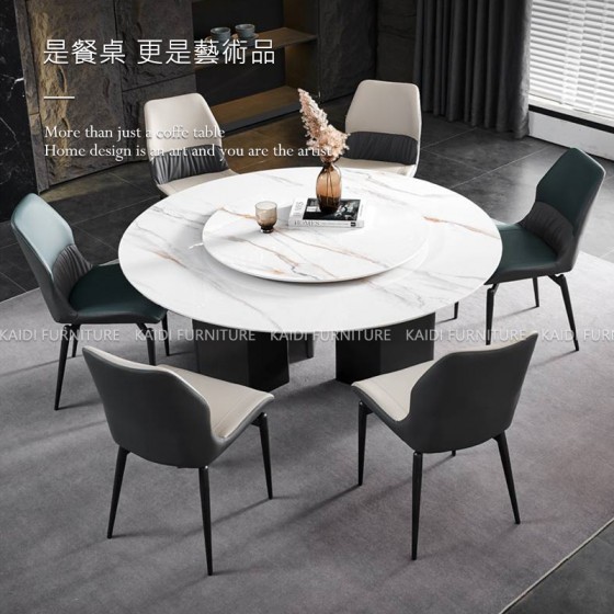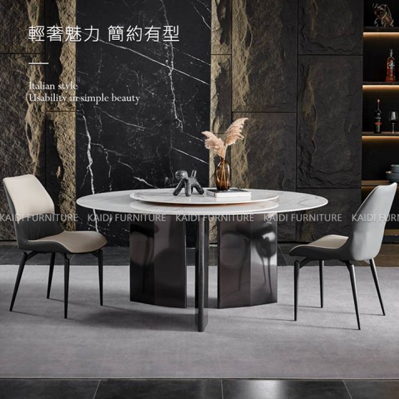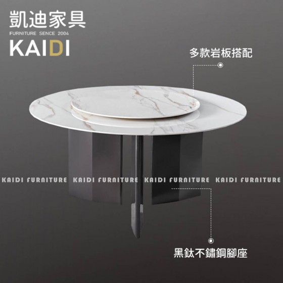 K128-ND6103 埃夫伯里義式輕奢直徑135公分不鏽鋼腳岩板圓桌(不含轉盤)