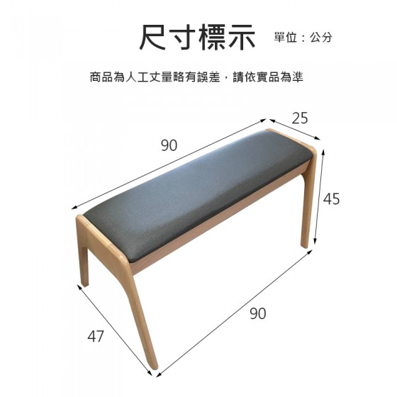 ● 尺寸約:坐面寬90*深25公分/總寬90*深47*高45公分