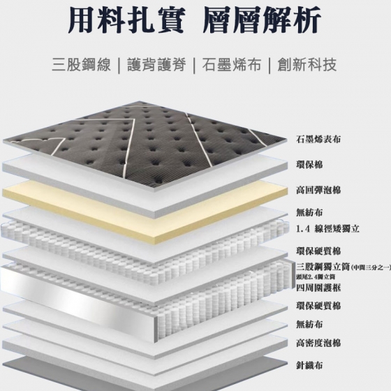 ● 商品名稱:K83-06-2 曼迪爾石墨烯5尺獨立筒床墊/另售3.5尺及6尺