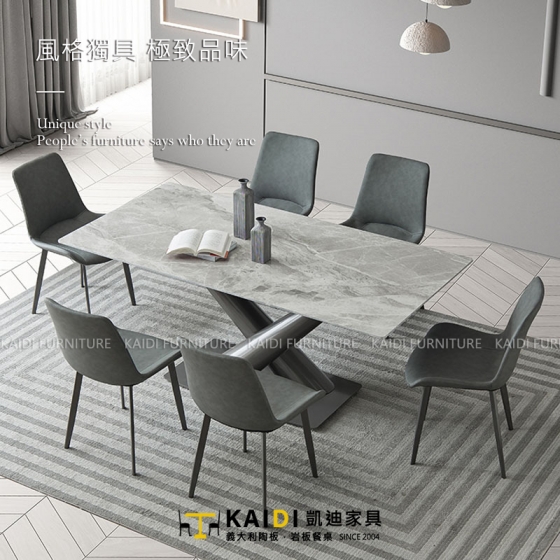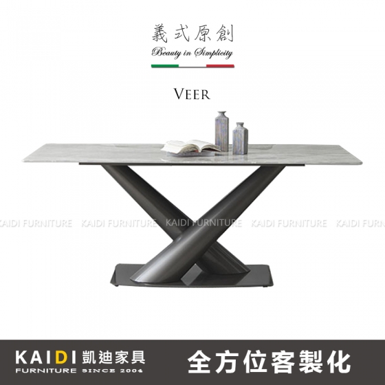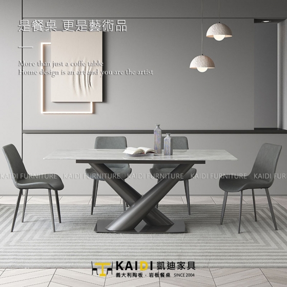K34-01-38 維爾義式輕奢圓柱V形腳岩板餐桌