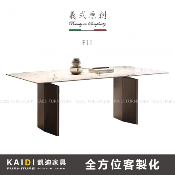K34-01-44 伊萊義式輕奢不鏽鋼腳岩板餐桌