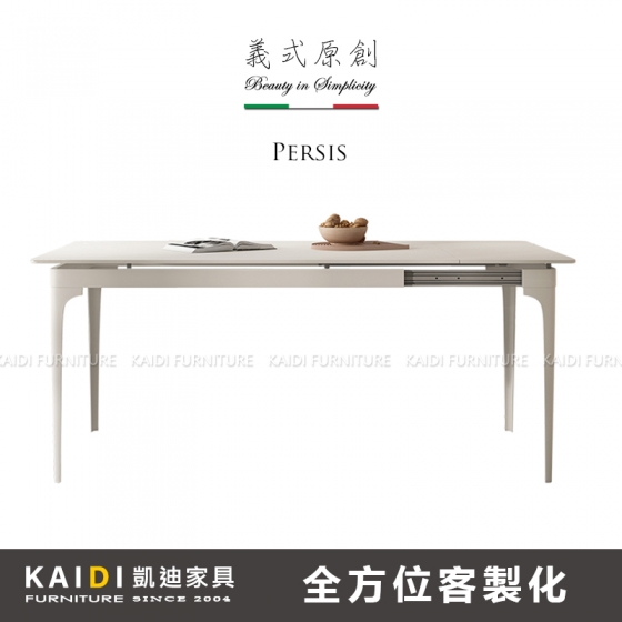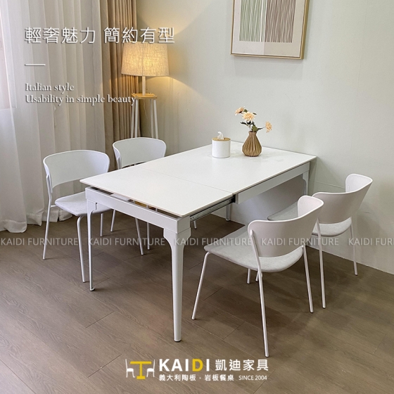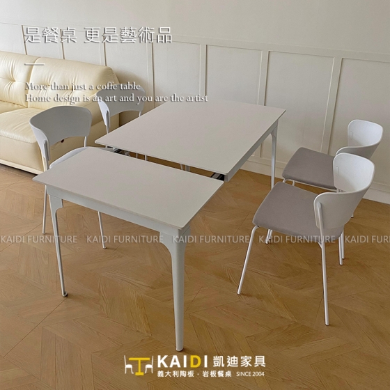 K128-ND698-1 珀西絲義式簡約奶油白單邊伸縮岩板餐桌100-140