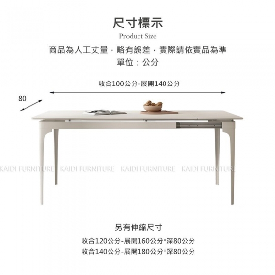 ● 商品名稱:K128-ND698-1 珀西絲義式簡約奶油白單邊伸縮岩板餐桌100-140