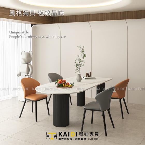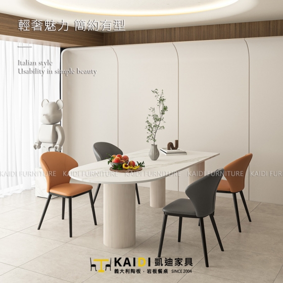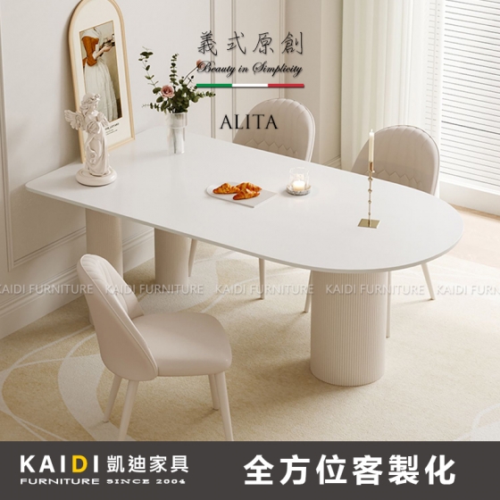 K34-01-36 艾莉塔極簡白色鋁合金圓柱腳岩板餐桌