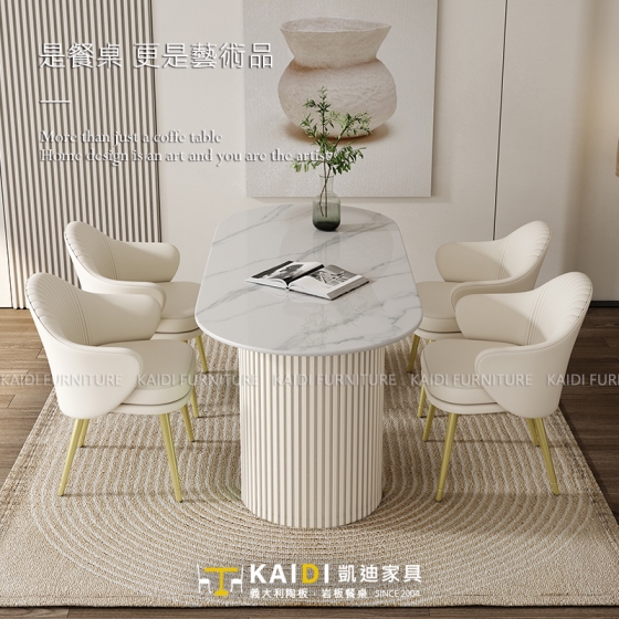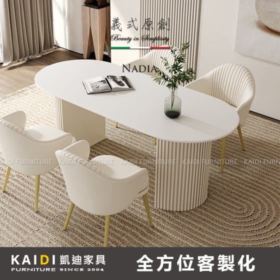 ● 商品名稱:K34-01-55 納迪亞義式輕奢奶油風白色腳座岩板餐桌