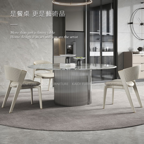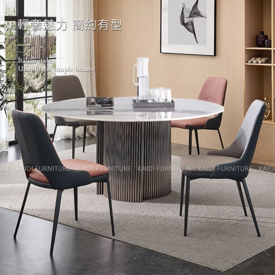 K34-01-57 伊利諾義式輕奢不鏽鋼腳岩板圓桌/轉盤另售