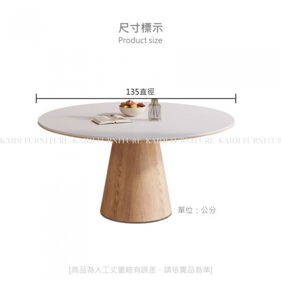 ● 商品名稱:K128-01-68米凱拉北歐風實木腳直徑135公分岩板圓桌/轉盤另售