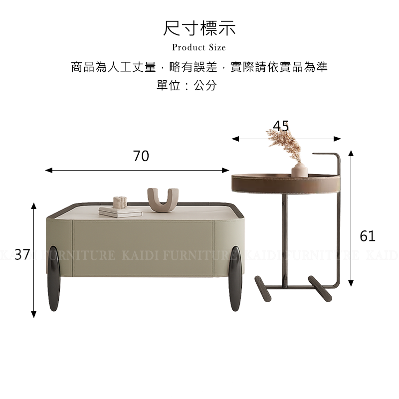 ● 尺寸約:茶几直徑70*高37公分/邊几直徑45*高61公分