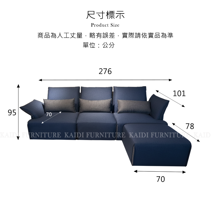 一字型:總寬276*總深101*總高95公分 編號:KD508B