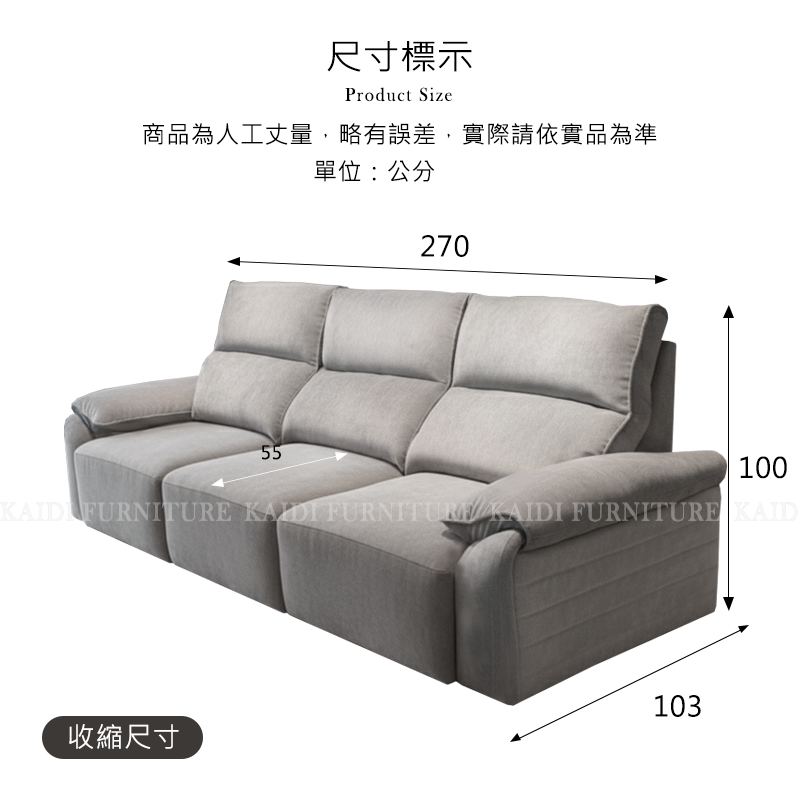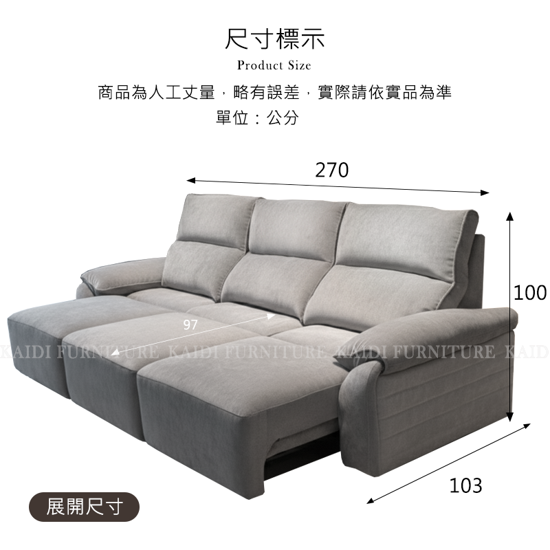 ● 尺寸約:分三位:總寬270*總深103*總高100公分/座高45/座深55-97