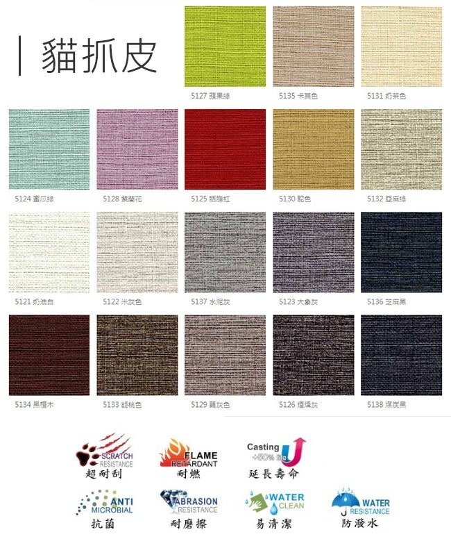 此款使用的示意皮版為耐磨耐燃強韌皮革。若訂做其他皮面或是布面,則看其訂做的材質特性而論