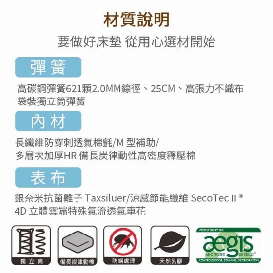 ● 商品名稱:X5-02 朵莉高彈力5尺雙人獨立筒床墊/另售3.5尺及6尺