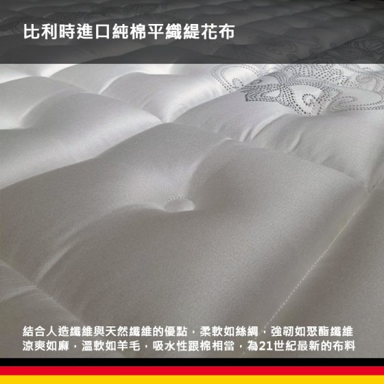 德國ARGO原裝進口獨立桶彈簧,回彈性優於一般獨立筒,真正保持獨立睡眠品質。2.0mm線徑獨立筒,讓喜愛柔軟床墊的愛好者,得到最好的服貼性和柔軟性。