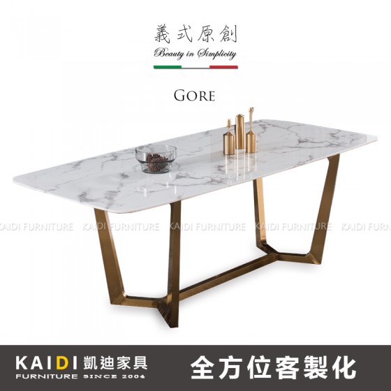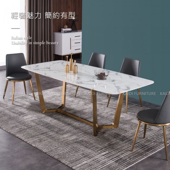 ● 商品名稱:K34-ND642-1 格爾義式輕奢簡約風不鏽鋼魚骨型金腳岩板餐桌