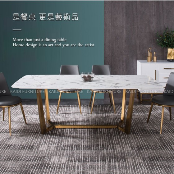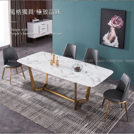 K34-ND642-1 格爾義式輕奢簡約風不鏽鋼魚骨型金腳岩板餐桌