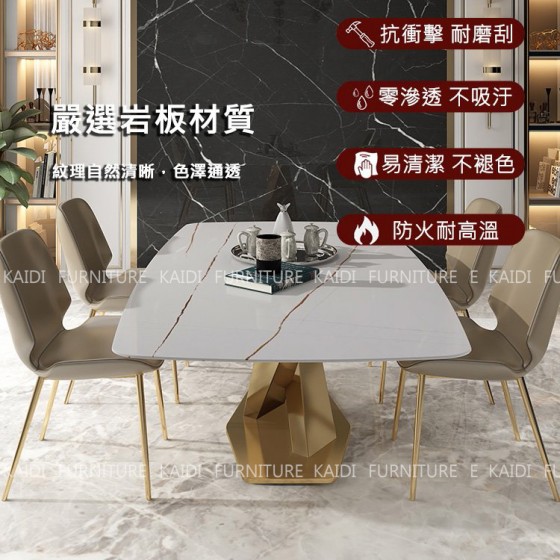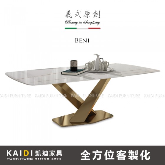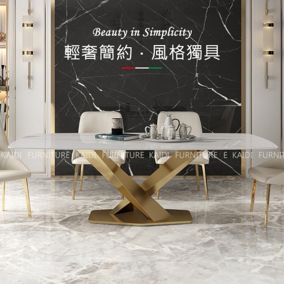 K34-ND601-1 貝尼義式輕奢簡約風不鏽鋼V型金腳岩板餐桌