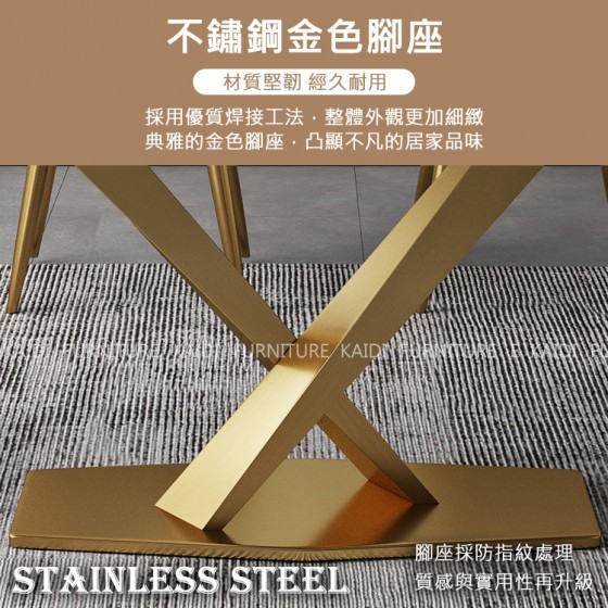 ● 商品名稱:K34-ND601-1 貝尼義式輕奢簡約風不鏽鋼V型金腳岩板餐桌