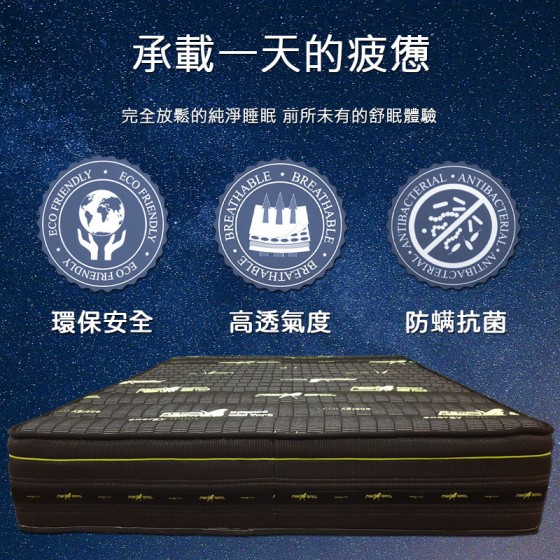 最新先進科技零度棉,均衡釋壓,具柔軟舒適特性,久壓不易塌陷、不悶熱。良好恆溫性能,吸濕透氣,無甲醛等有害物質,安全環保,表面無壓力,貼合身形,為您帶來釋壓感受及舒適的睡眠體驗。