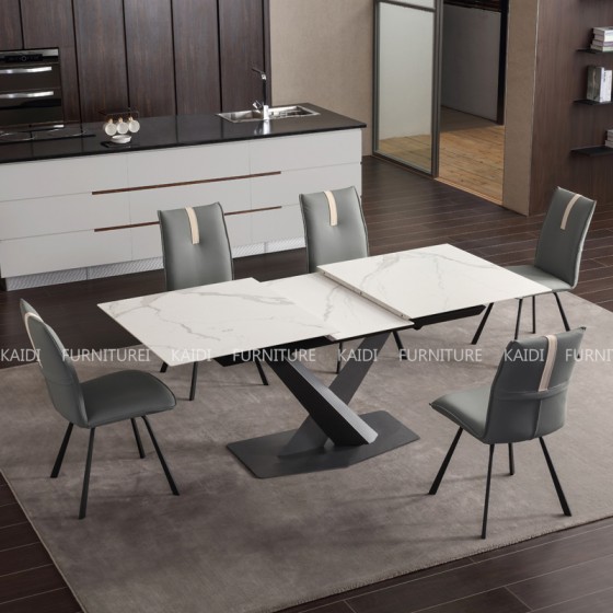 K128-06-1 寇特義式輕奢簡約風岩板伸縮拉合餐桌/120-150