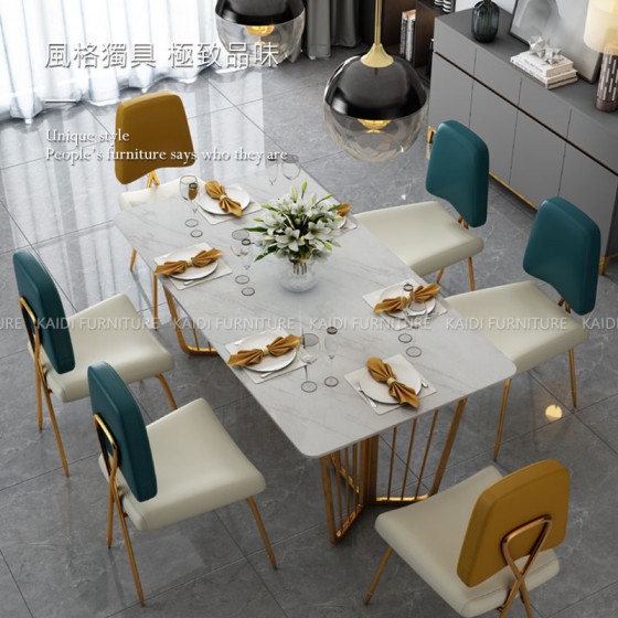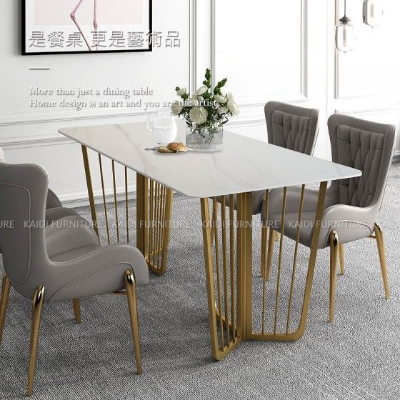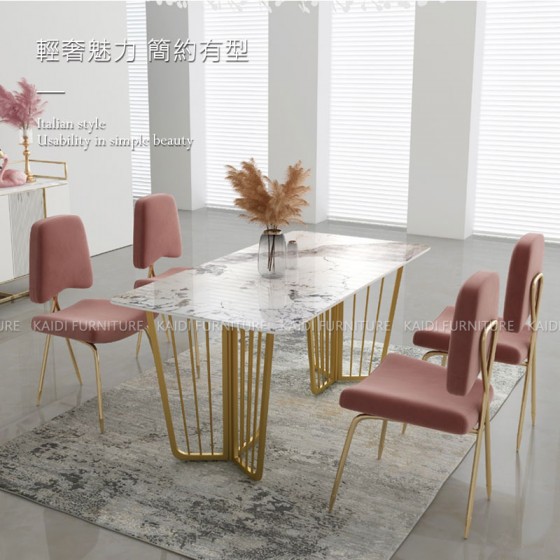 K34-ND656-1 加爾義式輕奢簡約風6尺金腳岩板餐桌