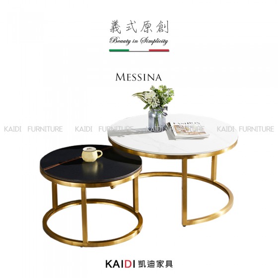 K26-NT813-1 美西納輕奢簡約風正岩板雙層圓型茶几組/圓几